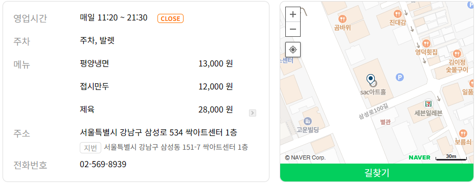 메밀과 육향의 조화로운 맛으로 소문난 평양 음식 전문점입니다. 대표 메뉴는 ‘평양냉면’입니다. 최상급 한우를 고아 만든 육수를 사용해 진득하고 깊은 맛을 느낄 수 있습니다.