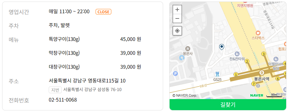 삼성동 맛집추천 곰바위 본점 가격 후기